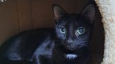 Esme is a stunning 1-year-old black cat with striking eyes and a gentle, shy soul. She may be a sensitive girl but once she feels safe and secure, you’ll see her softer side begin to shine through.