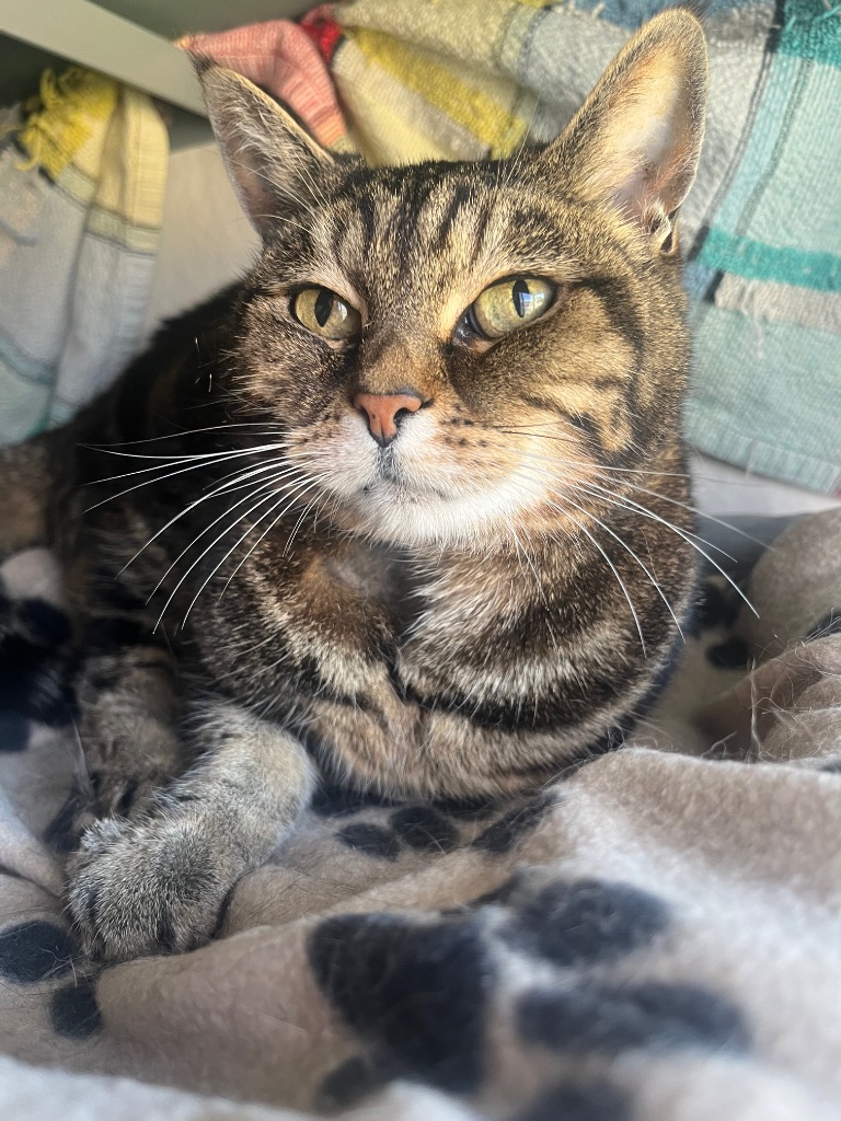 Luna is a gentle 7-year-old tabby cat with the heart of a fighter. She’s faced more than her fair share of hardship in life, yet continues to greet each day with quiet resilience and warmth.